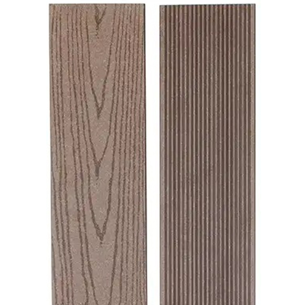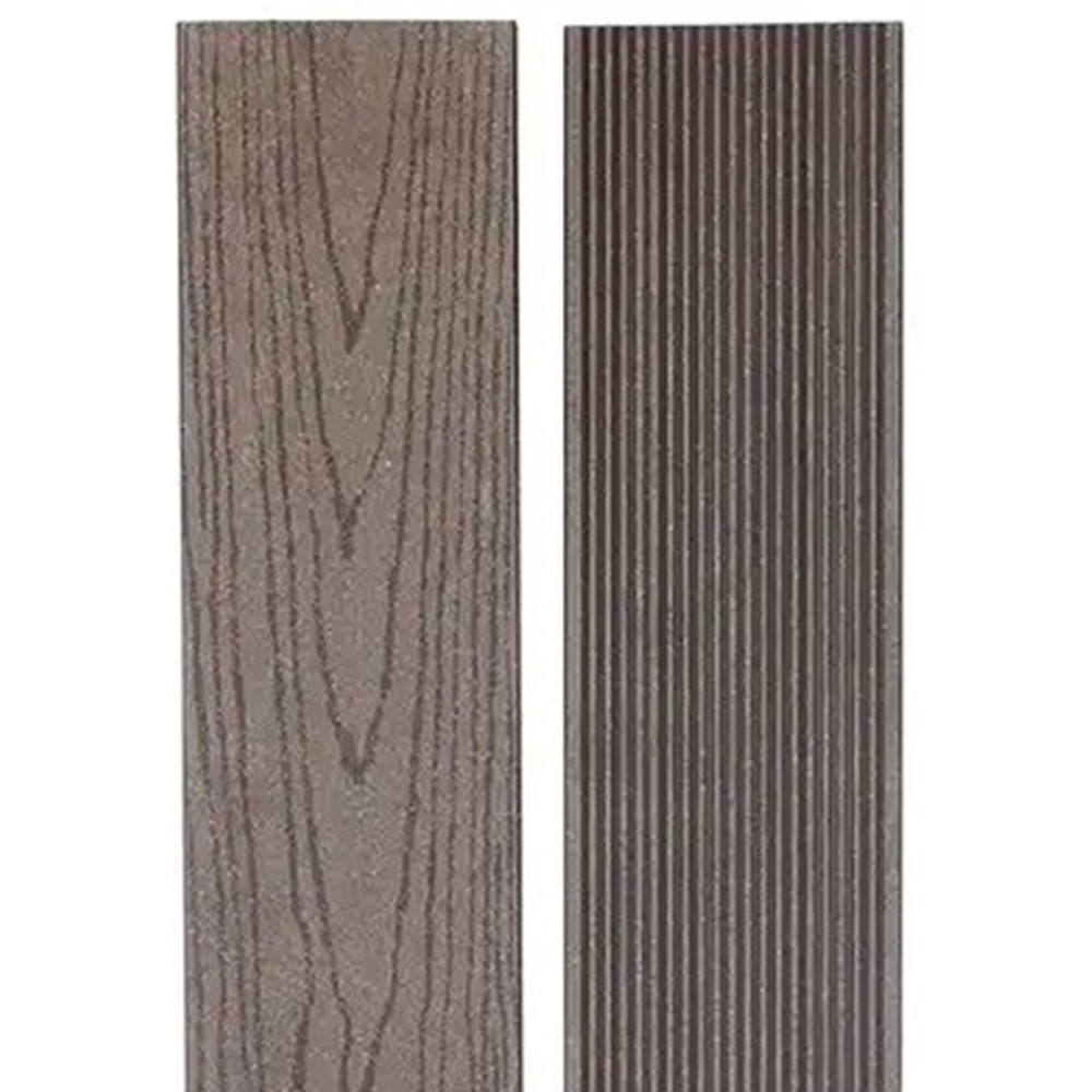 Террасная доска из древесно-полимерного композита с добавлением минералов (МДПК) 140 мм в цвете шоколад состоит из натуральной древесной муки, минералов, полимеров, также применяются красители и прочие добавки, в результате смешивания которых образуется износостойкий материал, обладающий огнеупорными и влагозащитными свойствами. Благодаря добавлению минералов доска прекрасно выдерживает воздействие атмосферных осадков по сравнению с классическим составом ДПК.